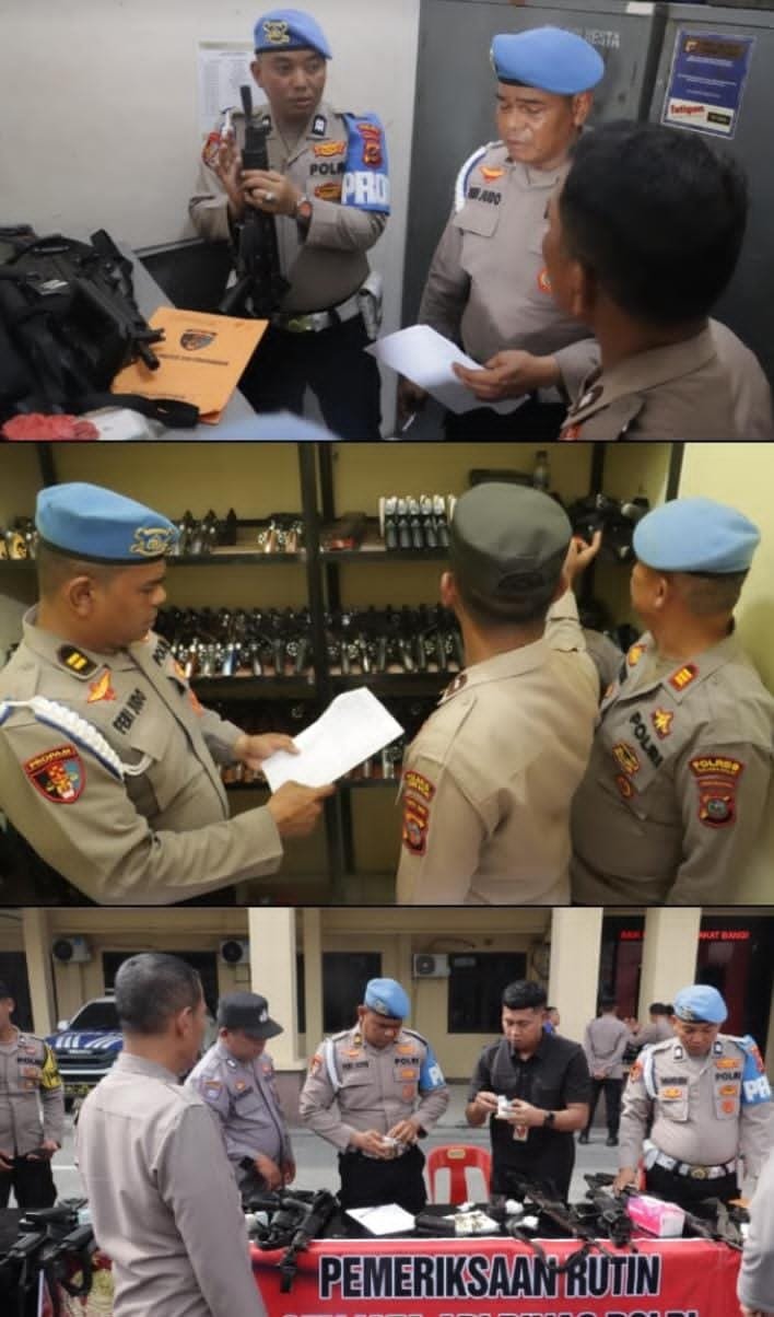 Pemeriksaan menyasar seluruh jenis senjata, mulai dari senjata api genggam yang dibawa personel hingga senjata laras panjang inventaris satuan fungsi dan Polsek jajaran.
