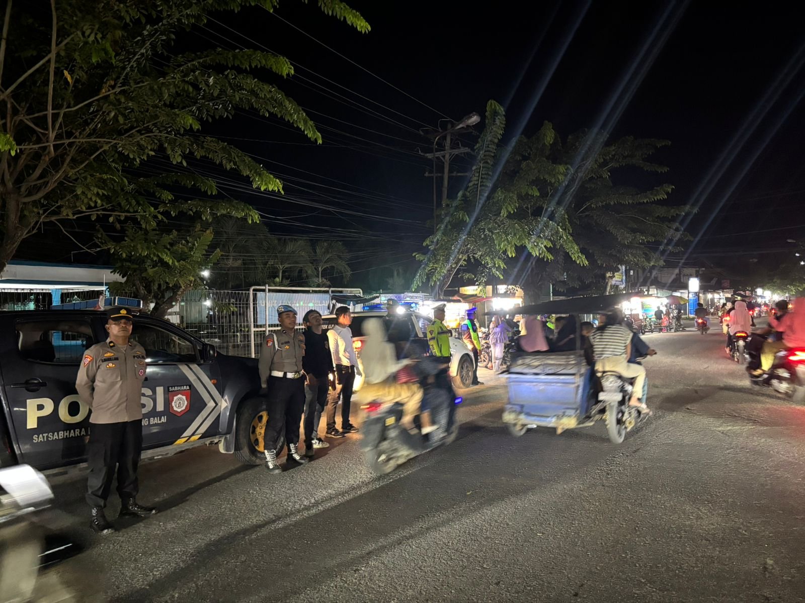 Selain mencegah kriminalitas, petugas juga memastikan arus lalu lintas berjalan tertib dan lancar.