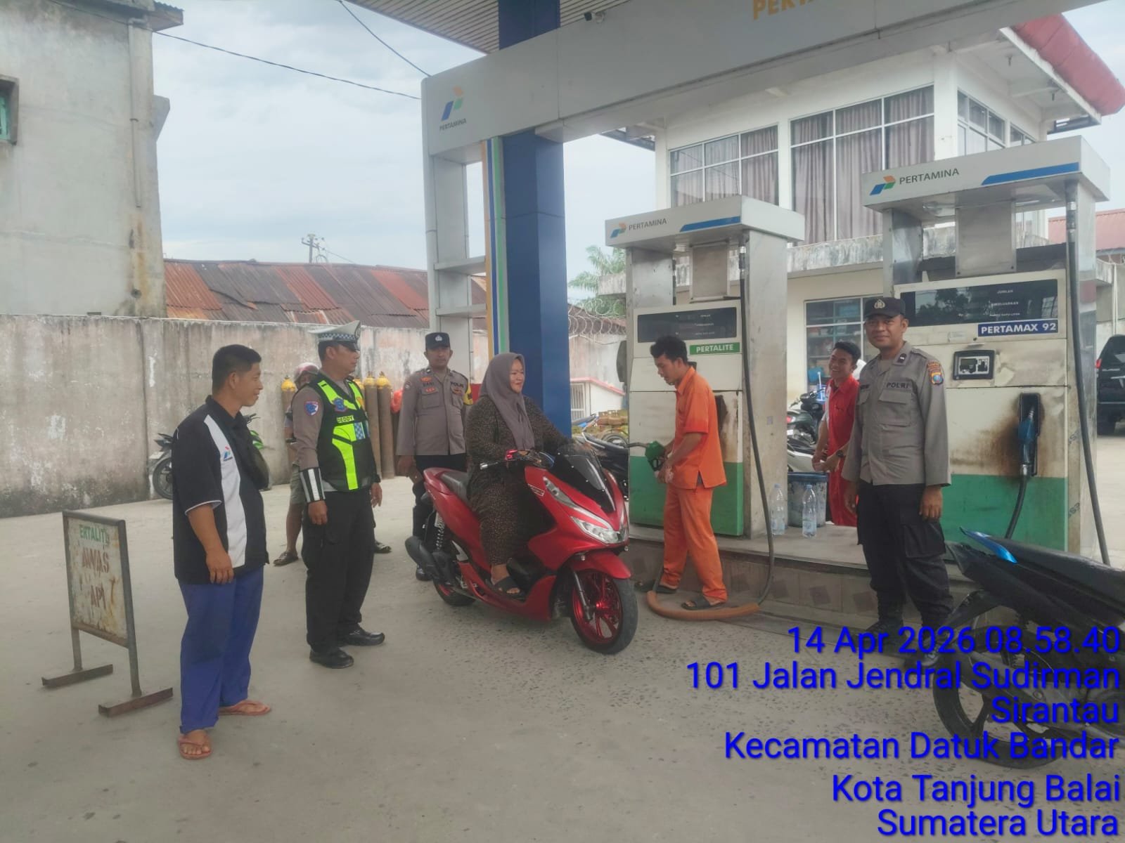 TANJUNG BALAI – Guna mengantisipasi antrean panjang dan memastikan distribusi Bahan Bakar Minyak (BBM) berjalan kondusif, jajaran Polres Tanjung Balai melaksanakan pengamanan ketat di sejumlah Stasiun Pengisian Bahan Bakar Umum (SPBU), Selasa (14/4).